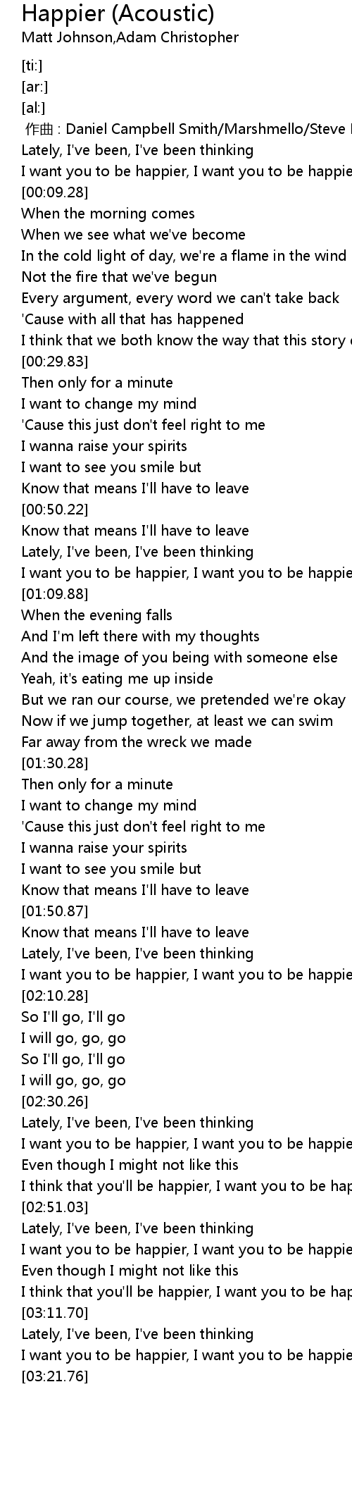 Ed Sheeran - Happier (Lyrics) ⏬ Download / Stream: https://atlanti.cr/yt-album Turn on notifications to stay updated with new . Happier Lyrics are a theme that is being searched for and appreciated by netizens now. You can Get the Happier Lyrics here. Download all royalty-free pix. Marshmello, Bastille - Happier (Lyrics), Stream Marshmello, Bastille - Happier (Lyrics): https://marshmello.lnk.to/HAPPIER Spotify Playlist: .